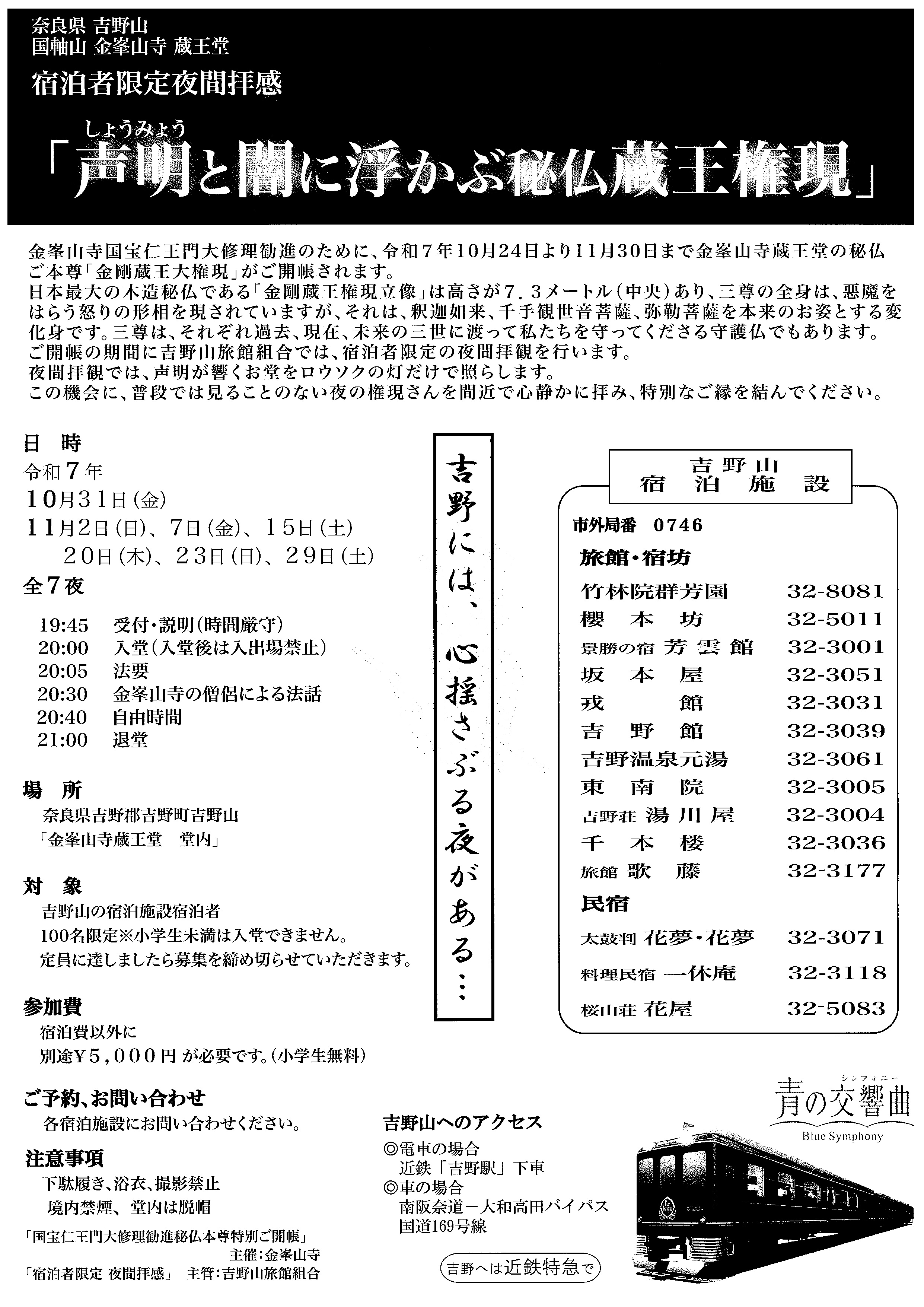 令和7年秋 宿泊者限定 夜間拝感 日程:10月31日、 11月2日、7日、15日、20日、23日、29日、